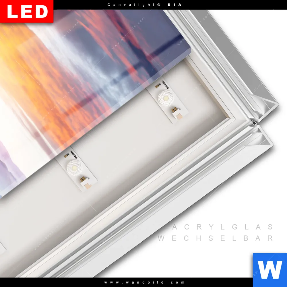LED-Glasbild mit austauschbarem Acrylglas-Druck (Wechselbild)