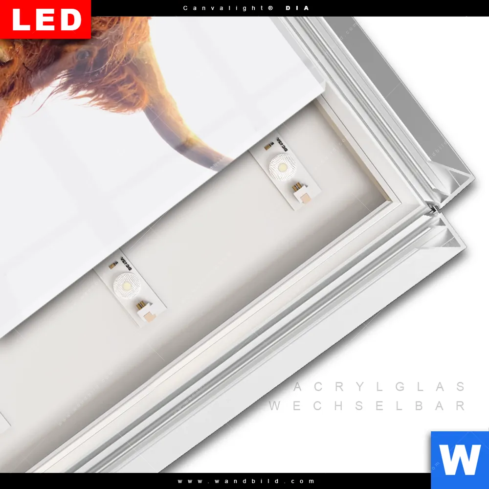LED-Glasbild mit austauschbarem Acrylglas-Druck (Wechselbild)