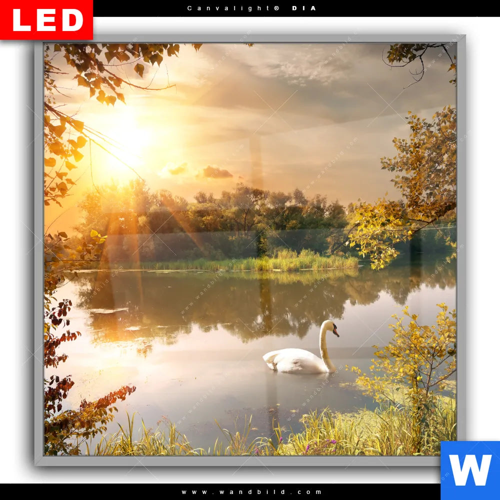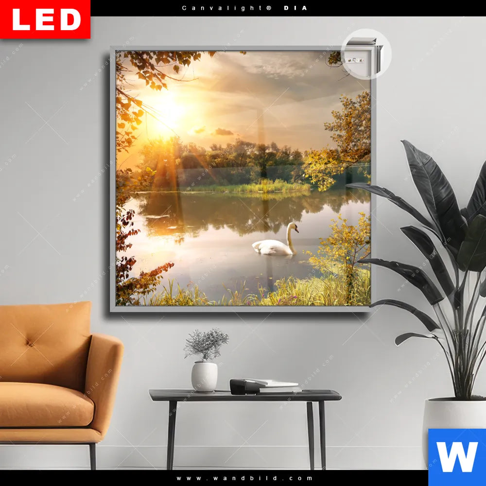 Canvalight® DIA Leuchtbild | Schwan im Teich | Quadrat