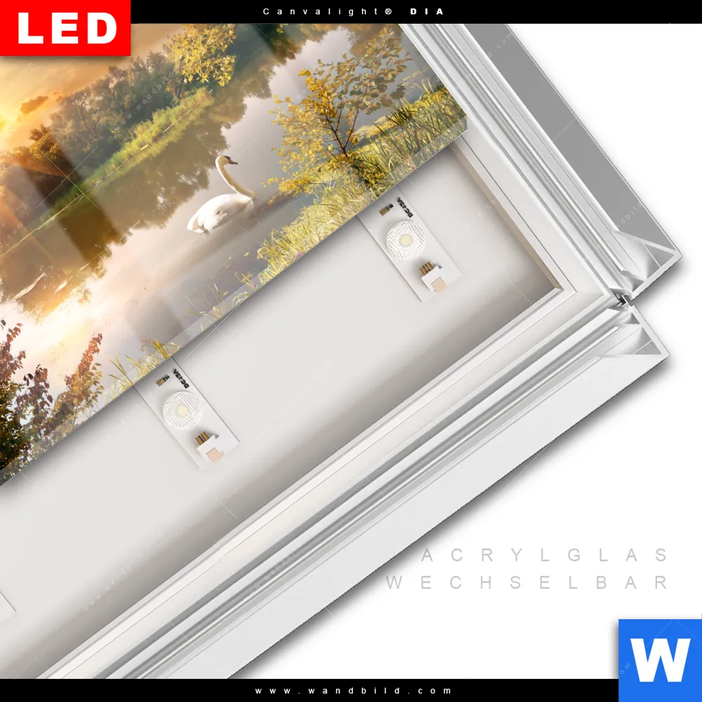LED-Glasbild mit austauschbarem Acrylglas-Druck (Wechselbild)