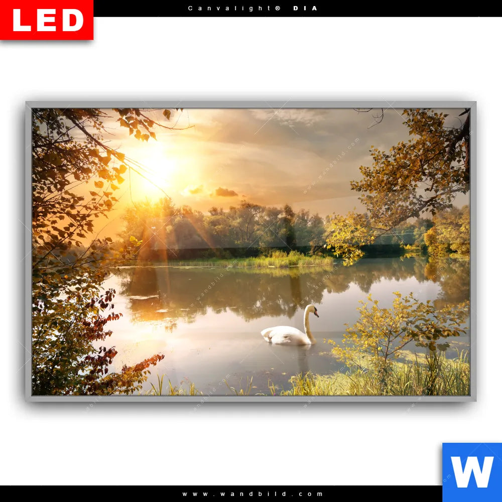 Canvalight® DIA Leuchtbild | Schwan im Teich | Querformat
