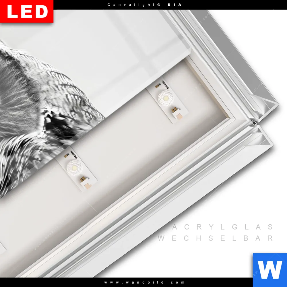 LED-Glasbild mit austauschbarem Acrylglas-Druck (Wechselbild)