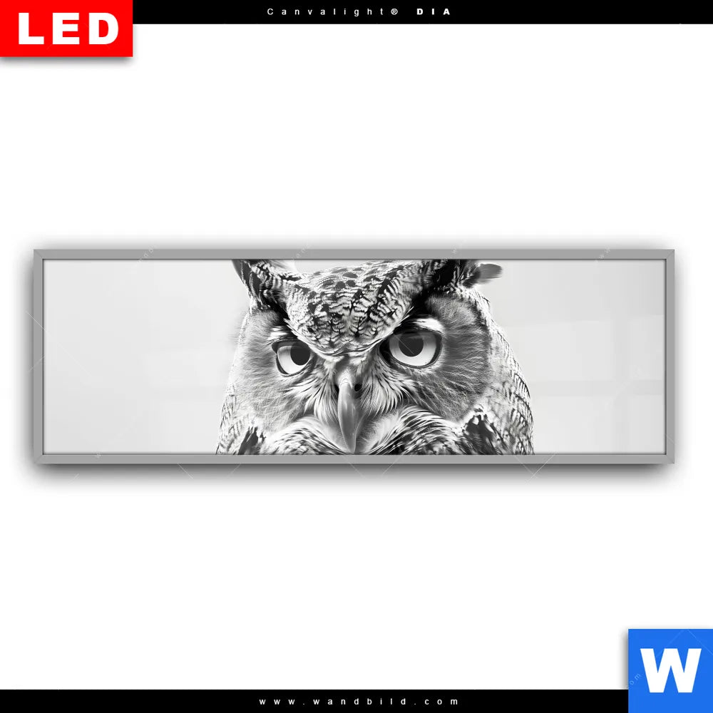 Canvalight® DIA Leuchtbild | Schwarz-Weiß Eulenportrait | Panorama