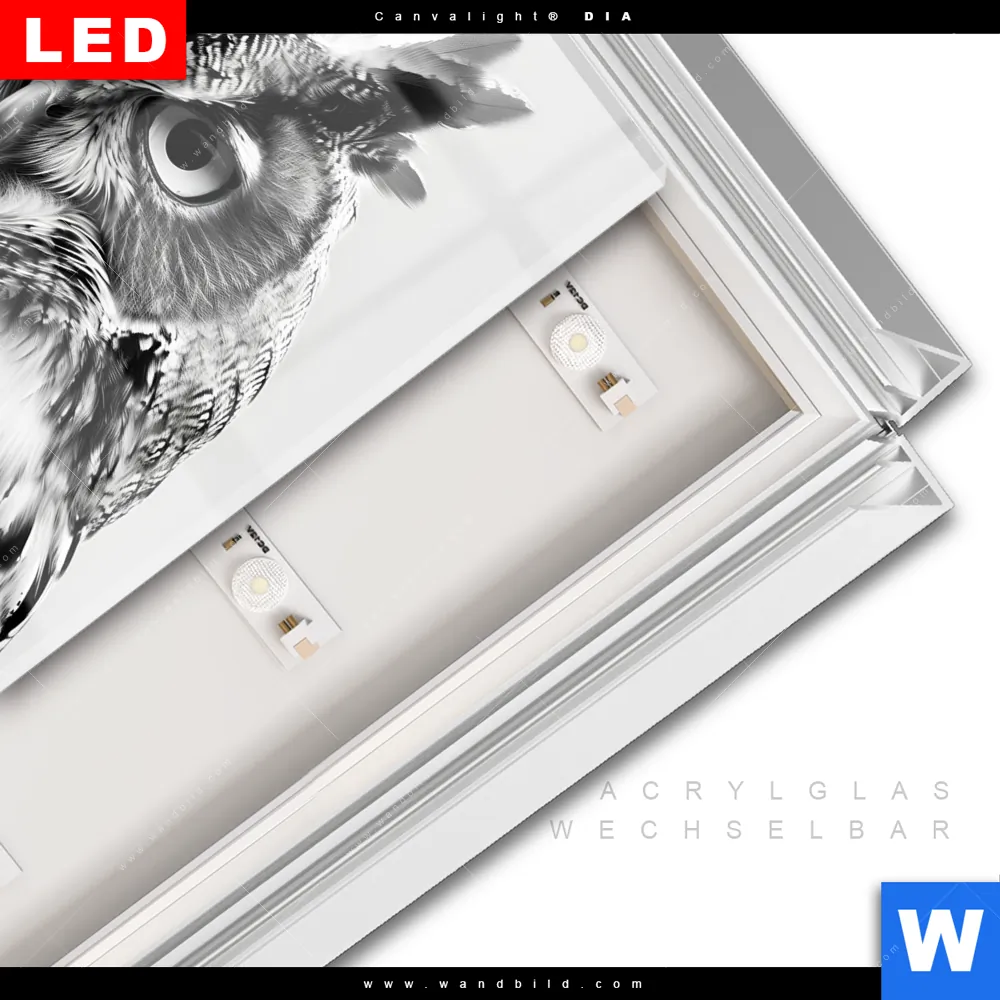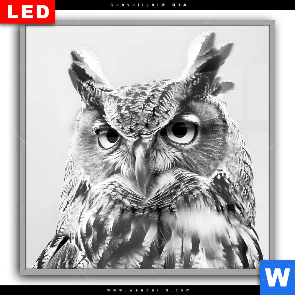 Canvalight® DIA Leuchtbild | Schwarz-Weiß Eulenportrait | Quadrat
