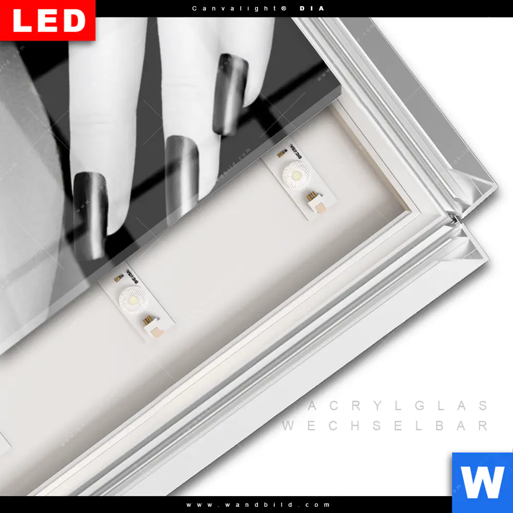 LED-Glasbild mit austauschbarem Acrylglas-Druck (Wechselbild)