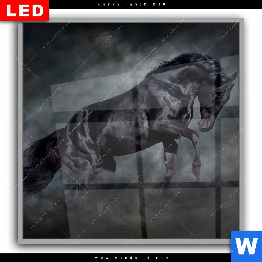 Canvalight® DIA Leuchtbild | Schwarzer Hengst | Quadrat