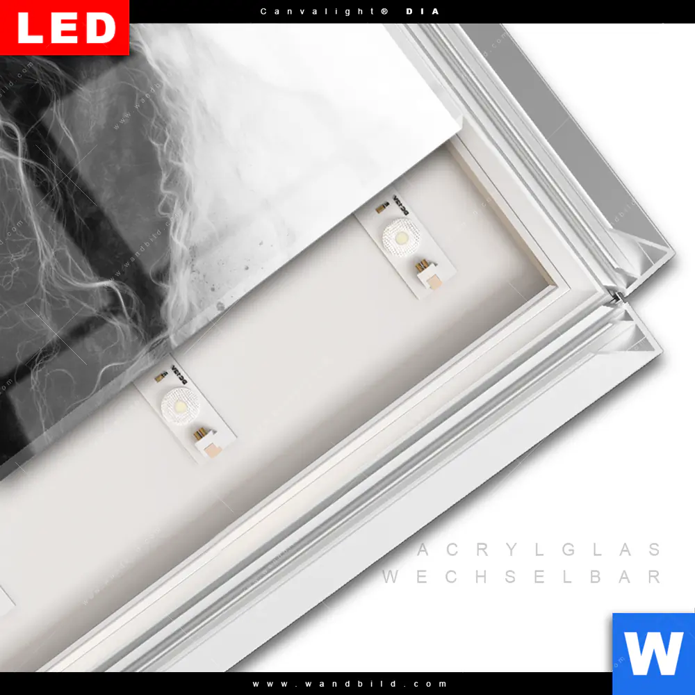LED-Glasbild mit austauschbarem Acrylglas-Druck (Wechselbild)