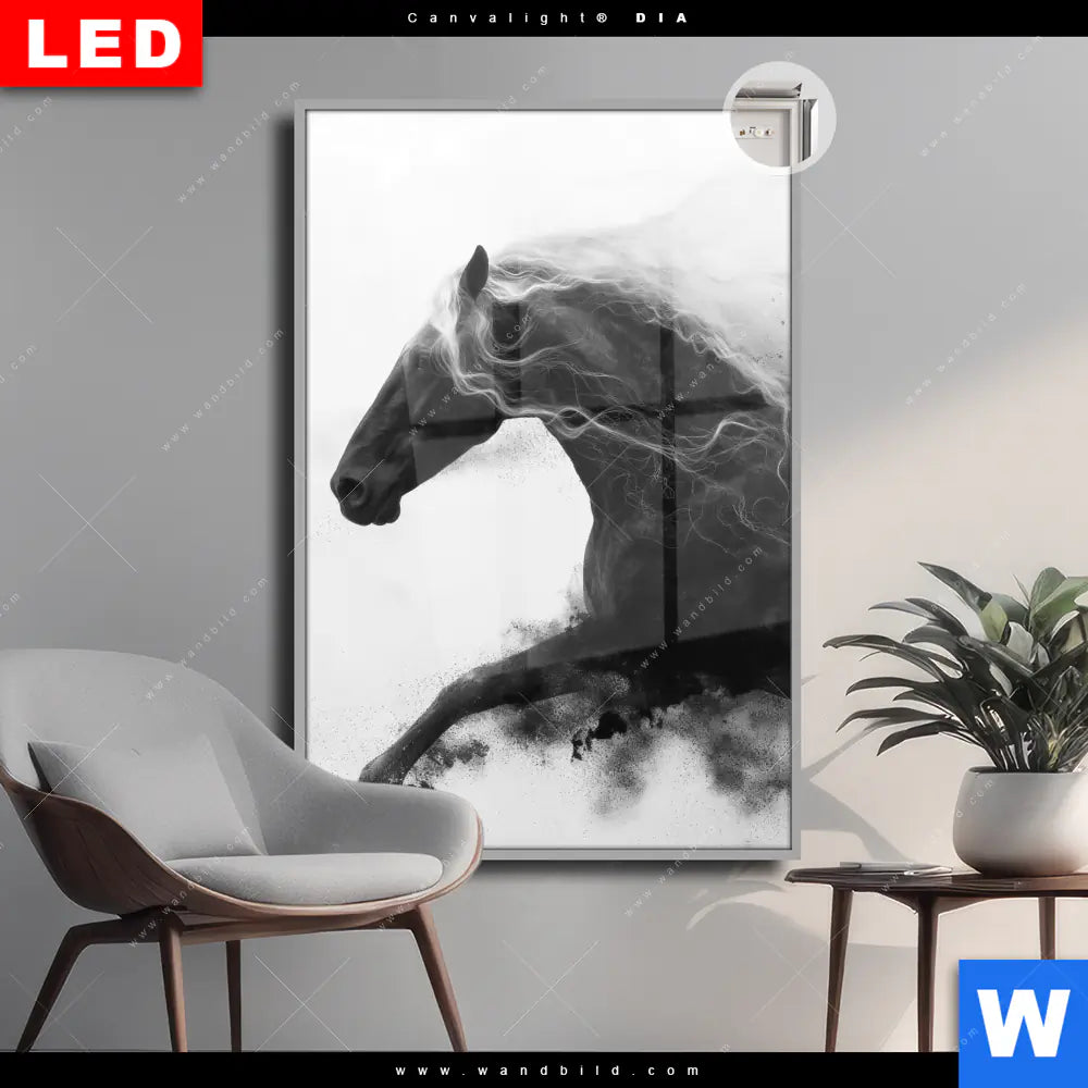 Canvalight® DIA Leuchtbild | Schwarzes Pferd voller Energie | Hochformat