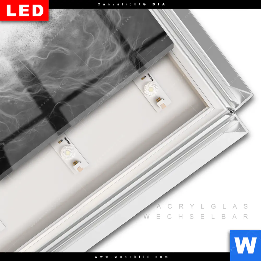 LED-Glasbild mit austauschbarem Acrylglas-Druck (Wechselbild)