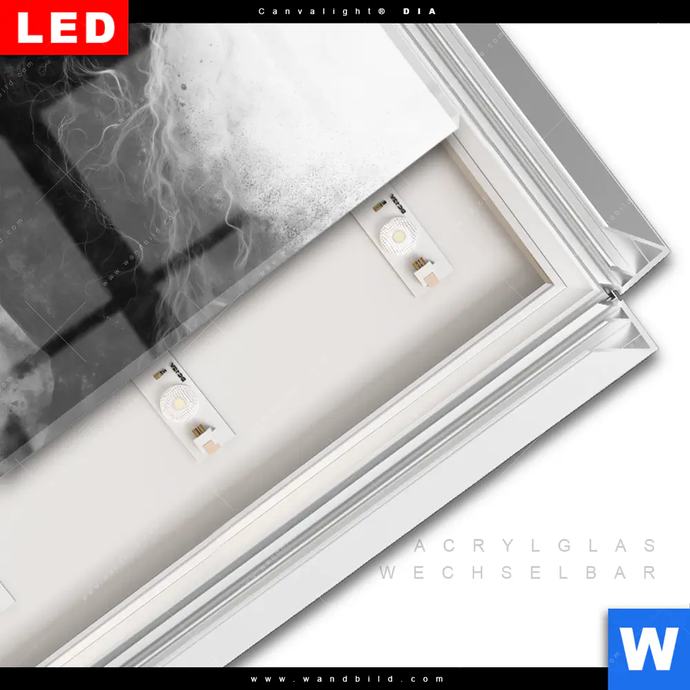 LED-Glasbild mit austauschbarem Acrylglas-Druck (Wechselbild)