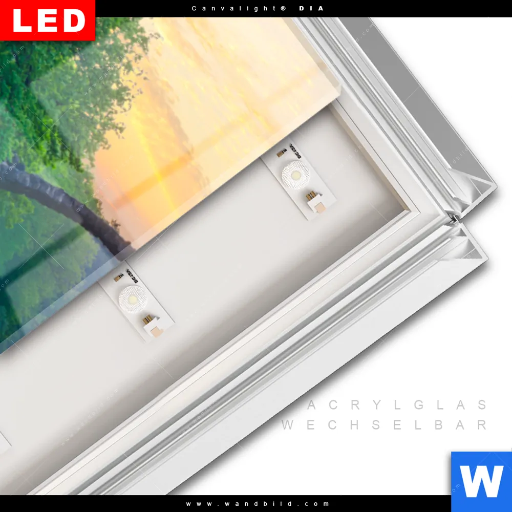LED-Glasbild mit austauschbarem Acrylglas-Druck (Wechselbild)