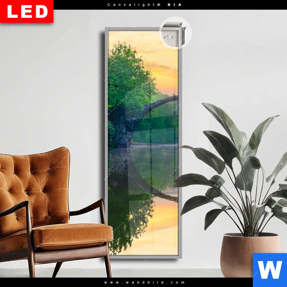 Canvalight® DIA Leuchtbild | See mit alter Brücke aus Stein | Schmal