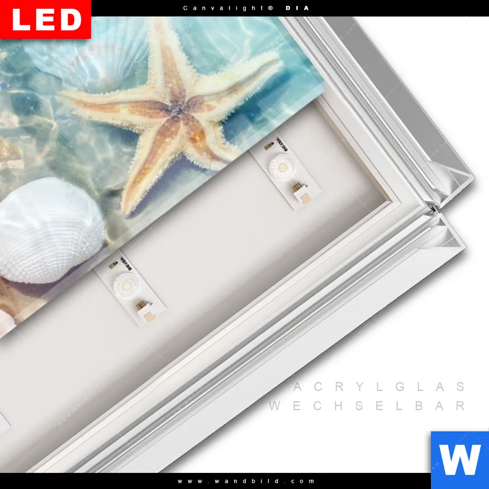 Canvalight® DIA Leuchtbild | Seesterne & Muscheln | Panorama