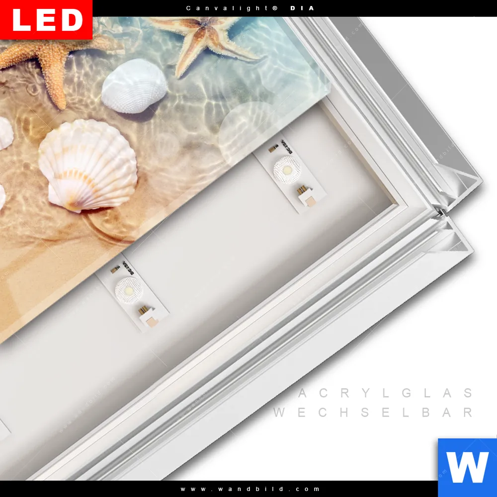 LED-Glasbild mit austauschbarem Acrylglas-Druck (Wechselbild)