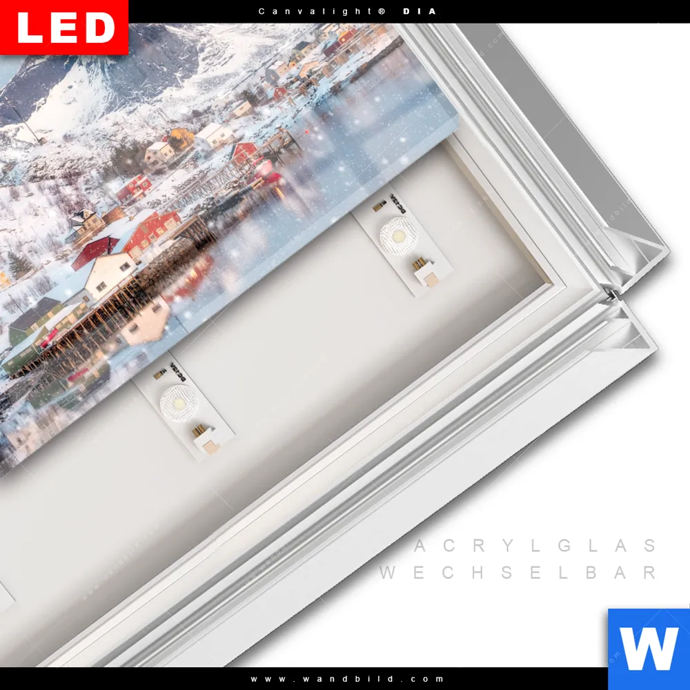 LED-Glasbild mit austauschbarem Acrylglas-Druck (Wechselbild)