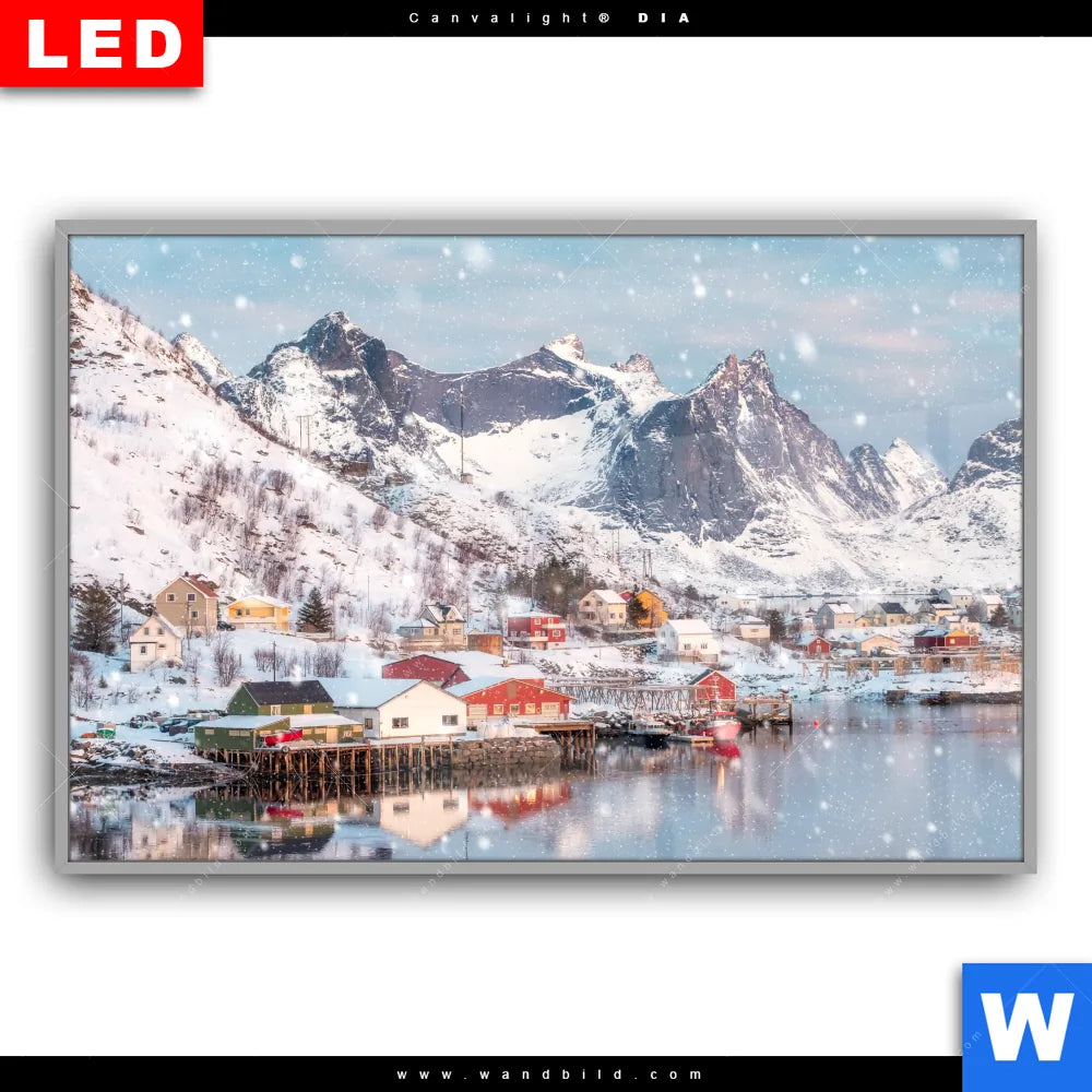 Canvalight® DIA Leuchtbild | Skandinavisches Dorf im Schnee | Querformat