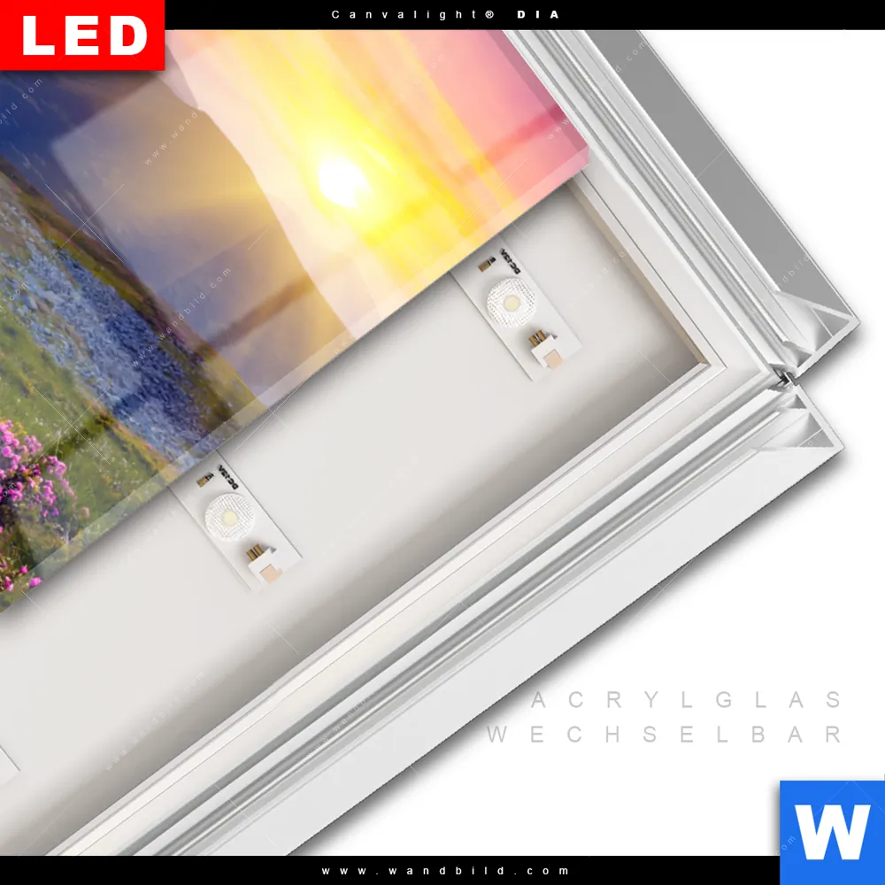 LED-Glasbild mit austauschbarem Acrylglas-Druck (Wechselbild)