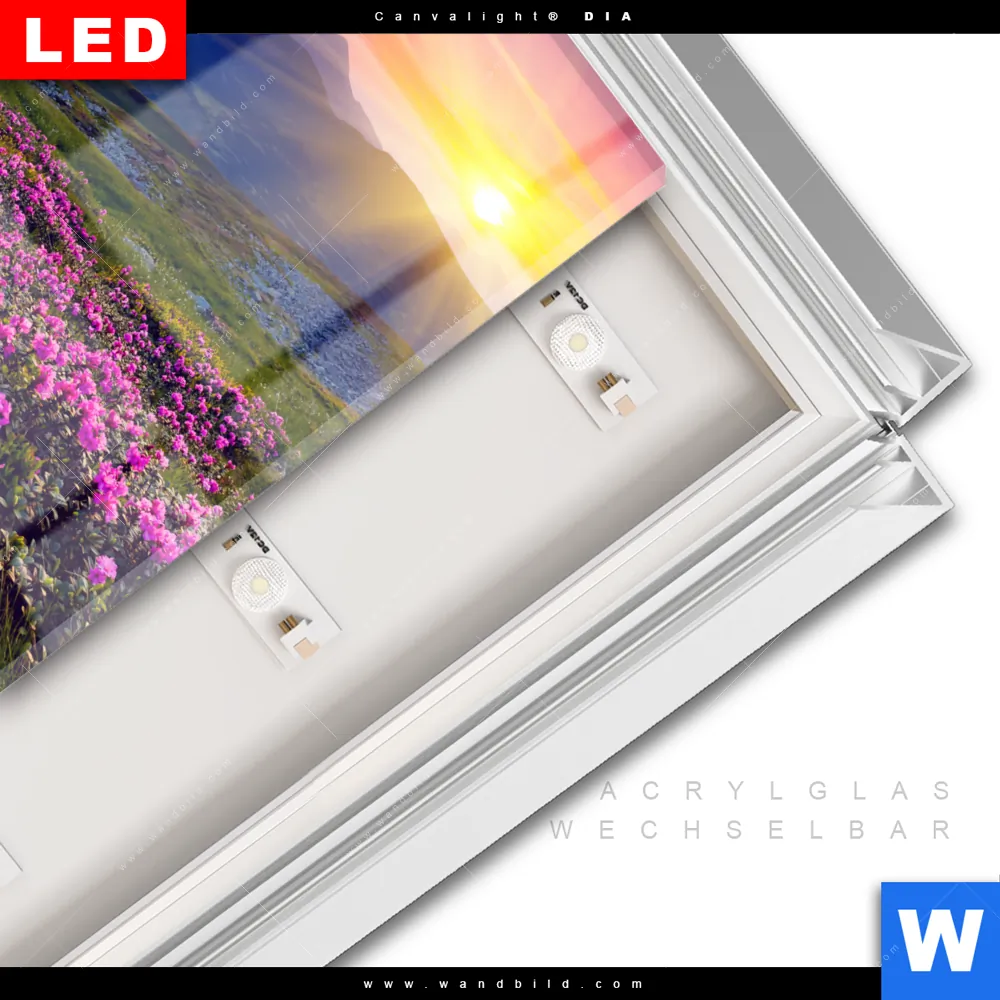 LED-Glasbild mit austauschbarem Acrylglas-Druck (Wechselbild)
