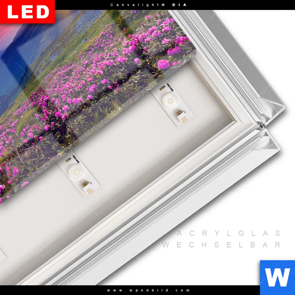 LED-Glasbild mit austauschbarem Acrylglas-Druck (Wechselbild)