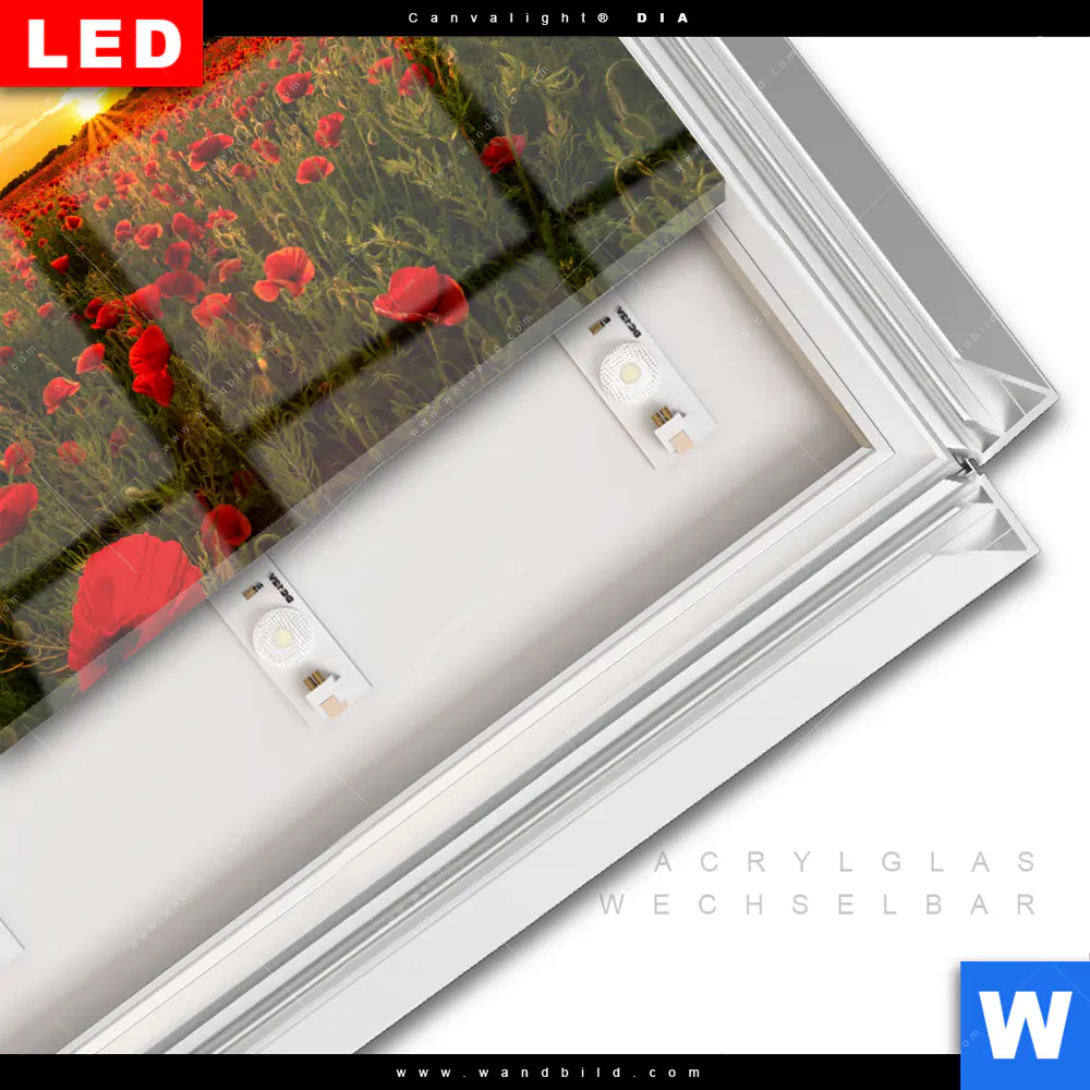 LED-Glasbild mit austauschbarem Acrylglas-Druck (Wechselbild)