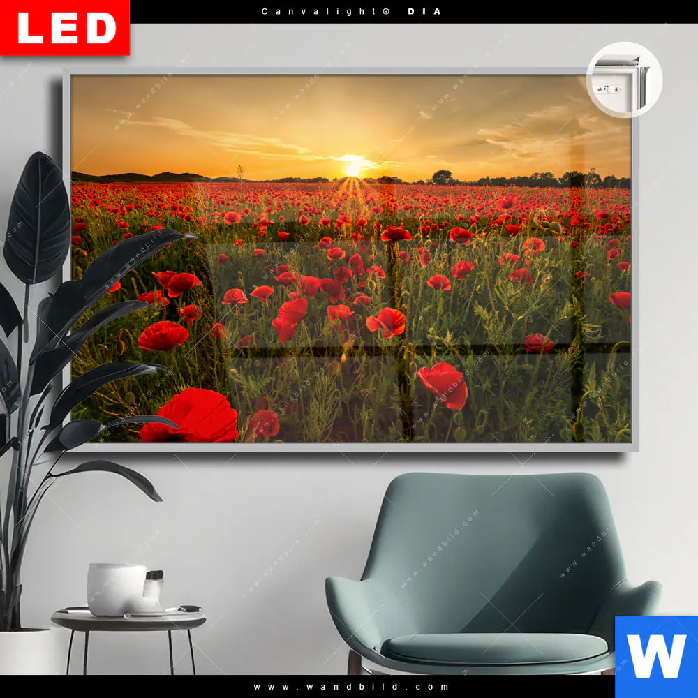 Canvalight® DIA Leuchtbild | Sommerlandschaft mit rotem Mohn | Querformat