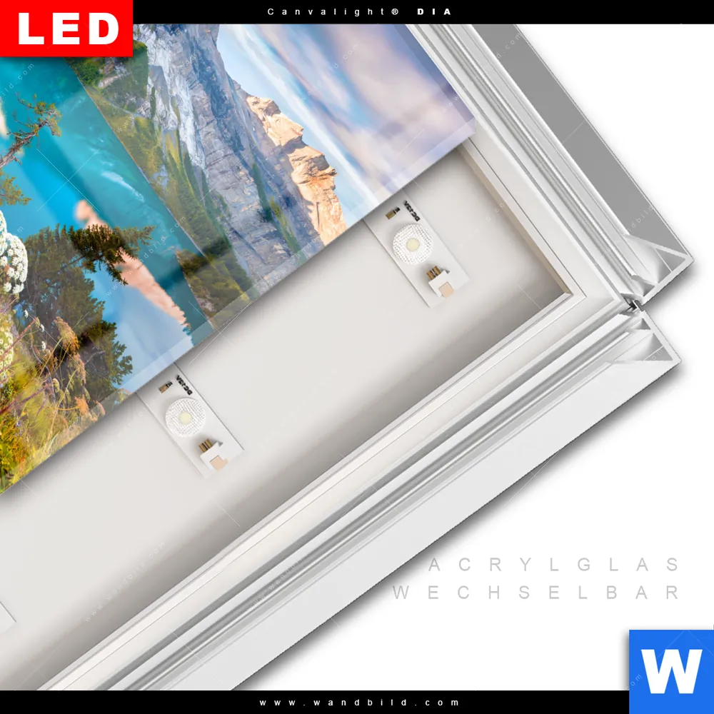 LED-Glasbild mit austauschbarem Acrylglas-Druck (Wechselbild)