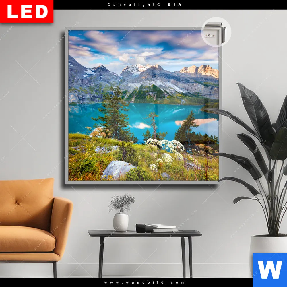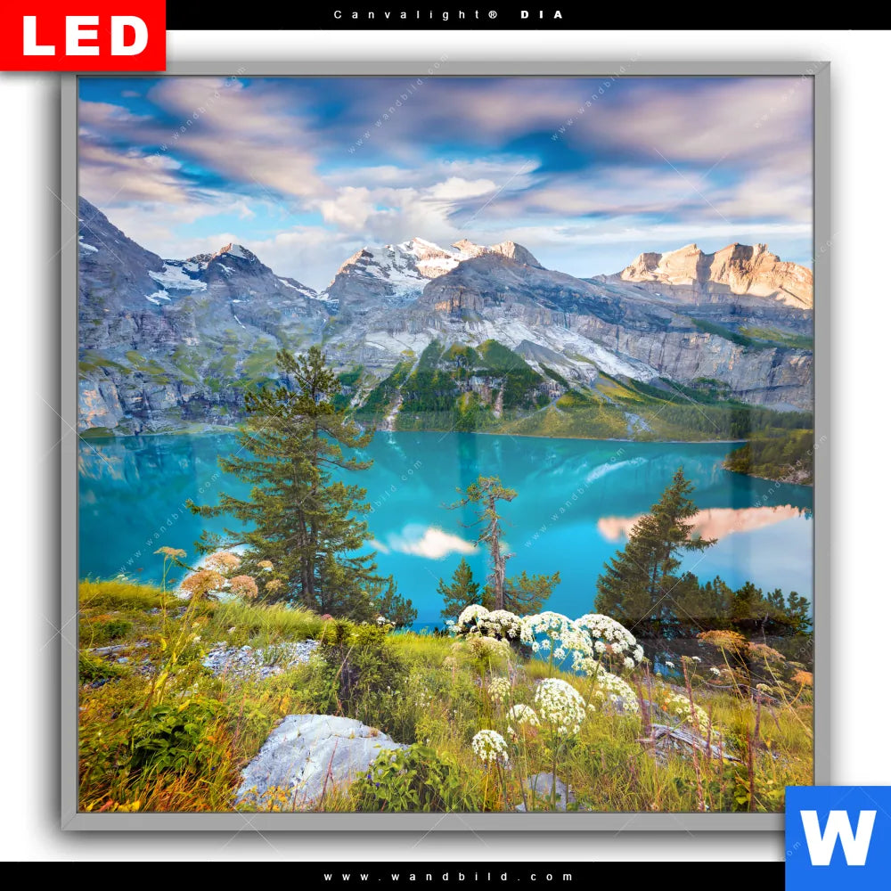 Canvalight® DIA Leuchtbild | Sommermorgen am Bergsee | Quadrat