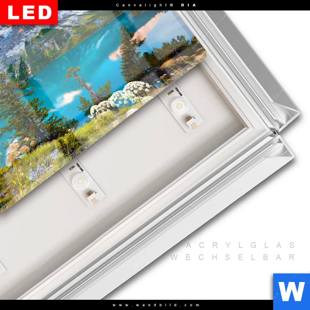 LED-Glasbild mit austauschbarem Acrylglas-Druck (Wechselbild)