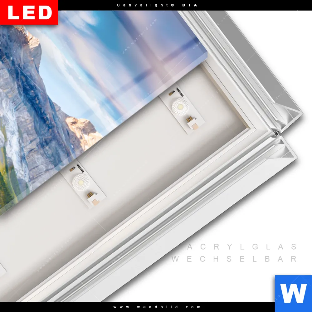 LED-Glasbild mit austauschbarem Acrylglas-Druck (Wechselbild)