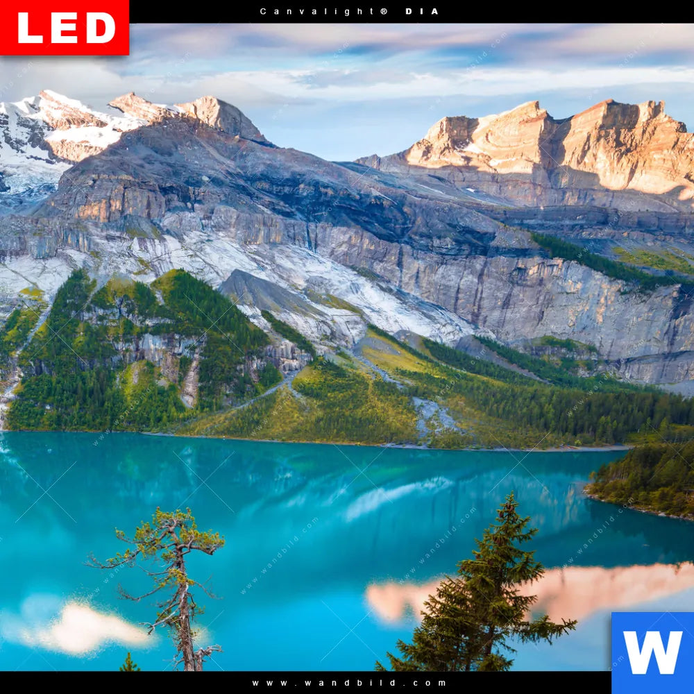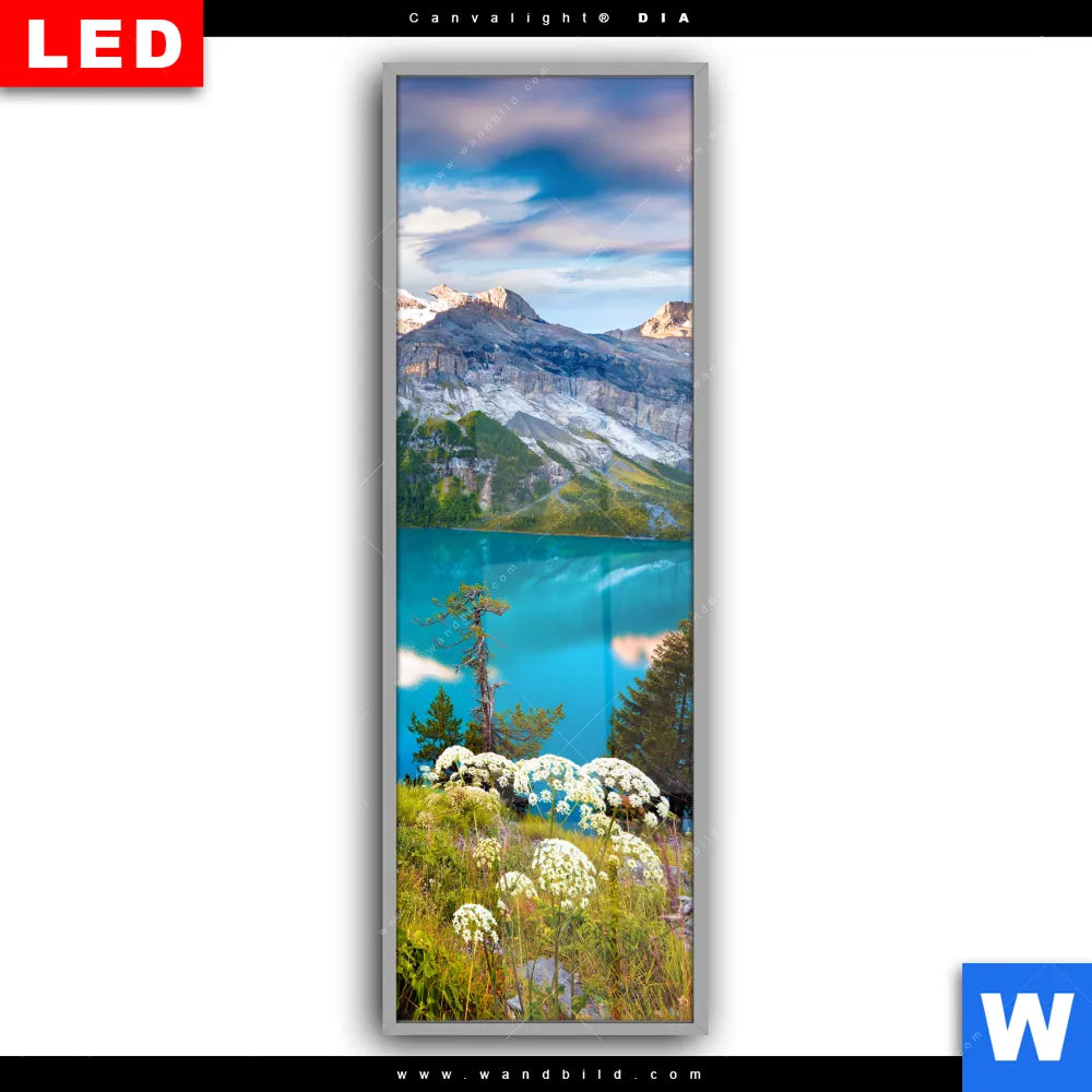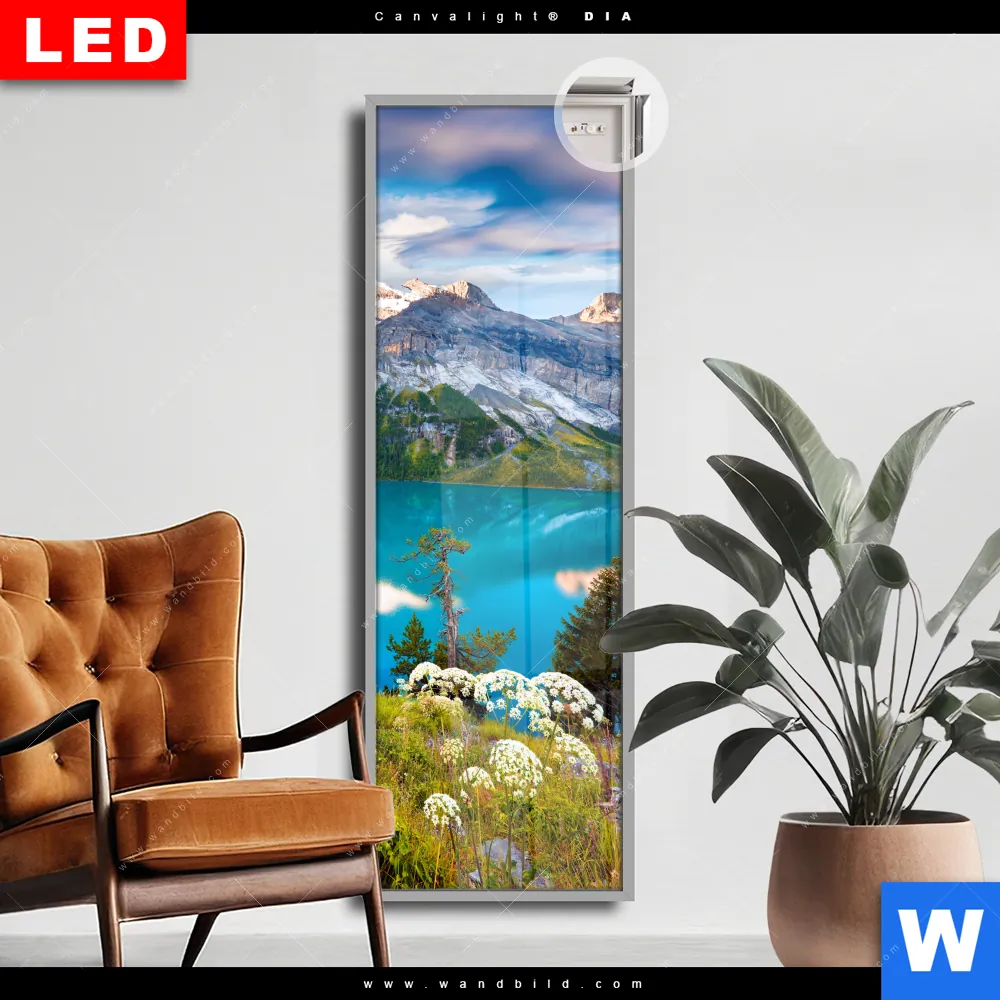 Canvalight® DIA Leuchtbild | Sommermorgen am Bergsee | Schmal