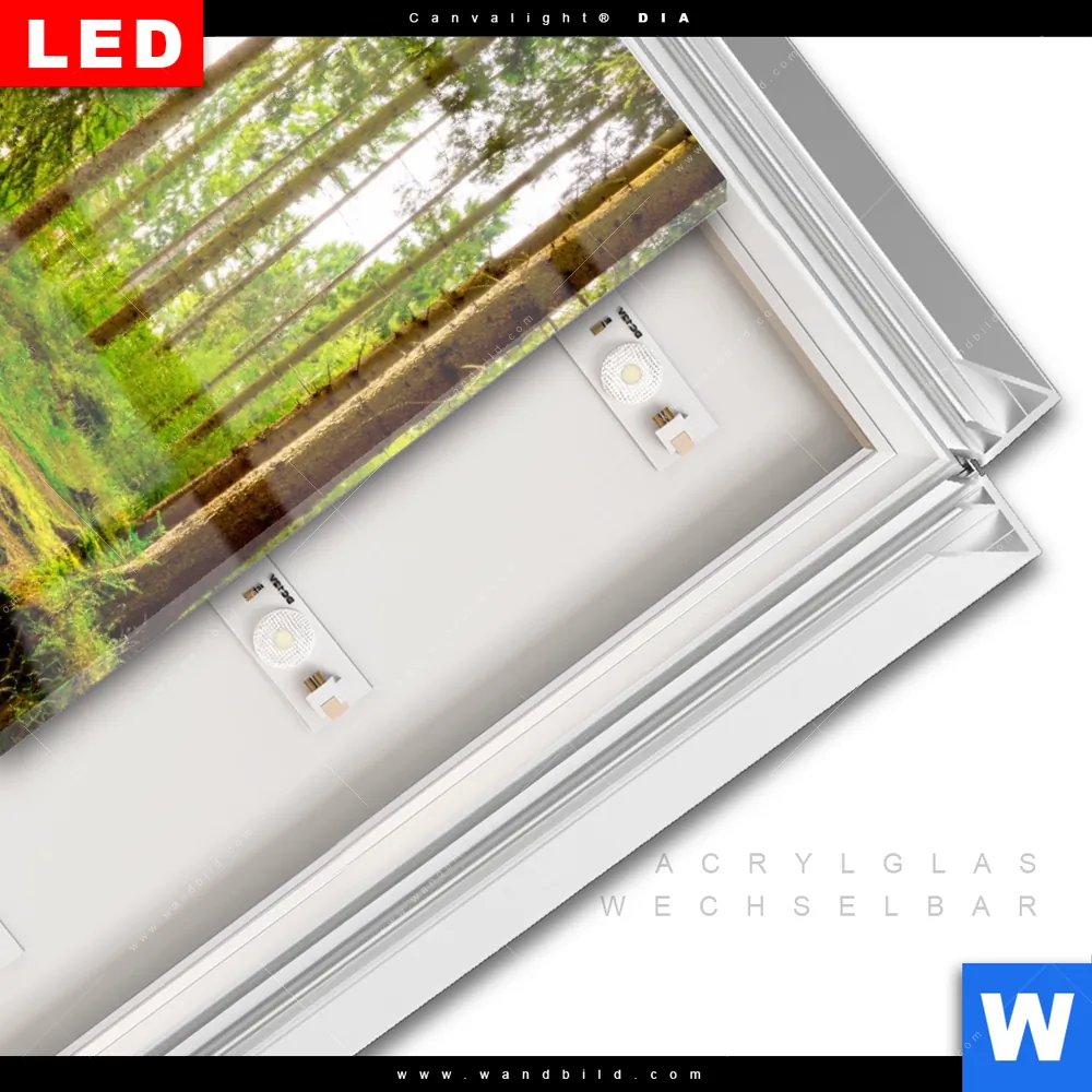 LED-Glasbild mit austauschbarem Acrylglas-Druck (Wechselbild)
