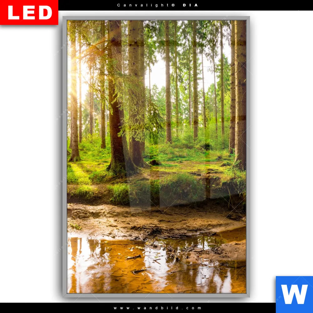 Canvalight® DIA Leuchtbild | Sonne im grünen Wald | Hochformat