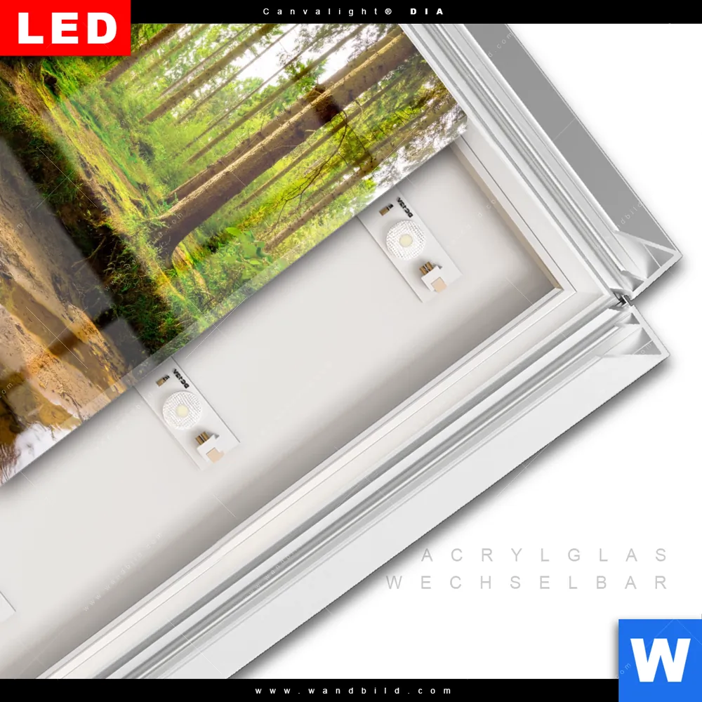 LED-Glasbild mit austauschbarem Acrylglas-Druck (Wechselbild)