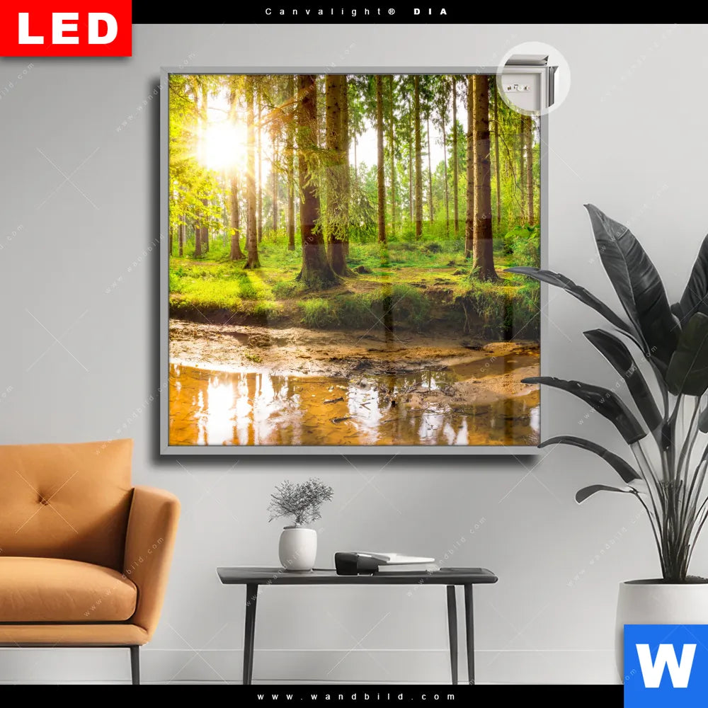Canvalight® DIA Leuchtbild | Sonne im grünen Wald | Quadrat