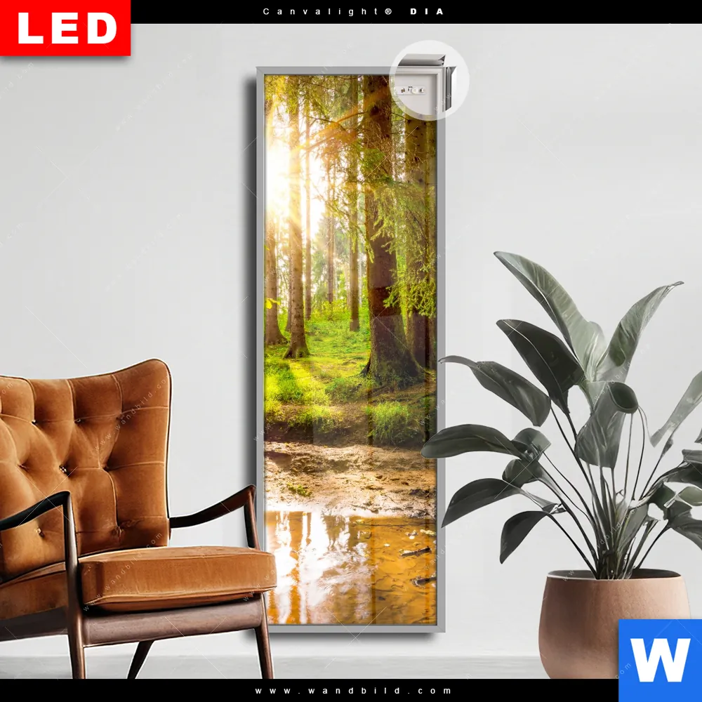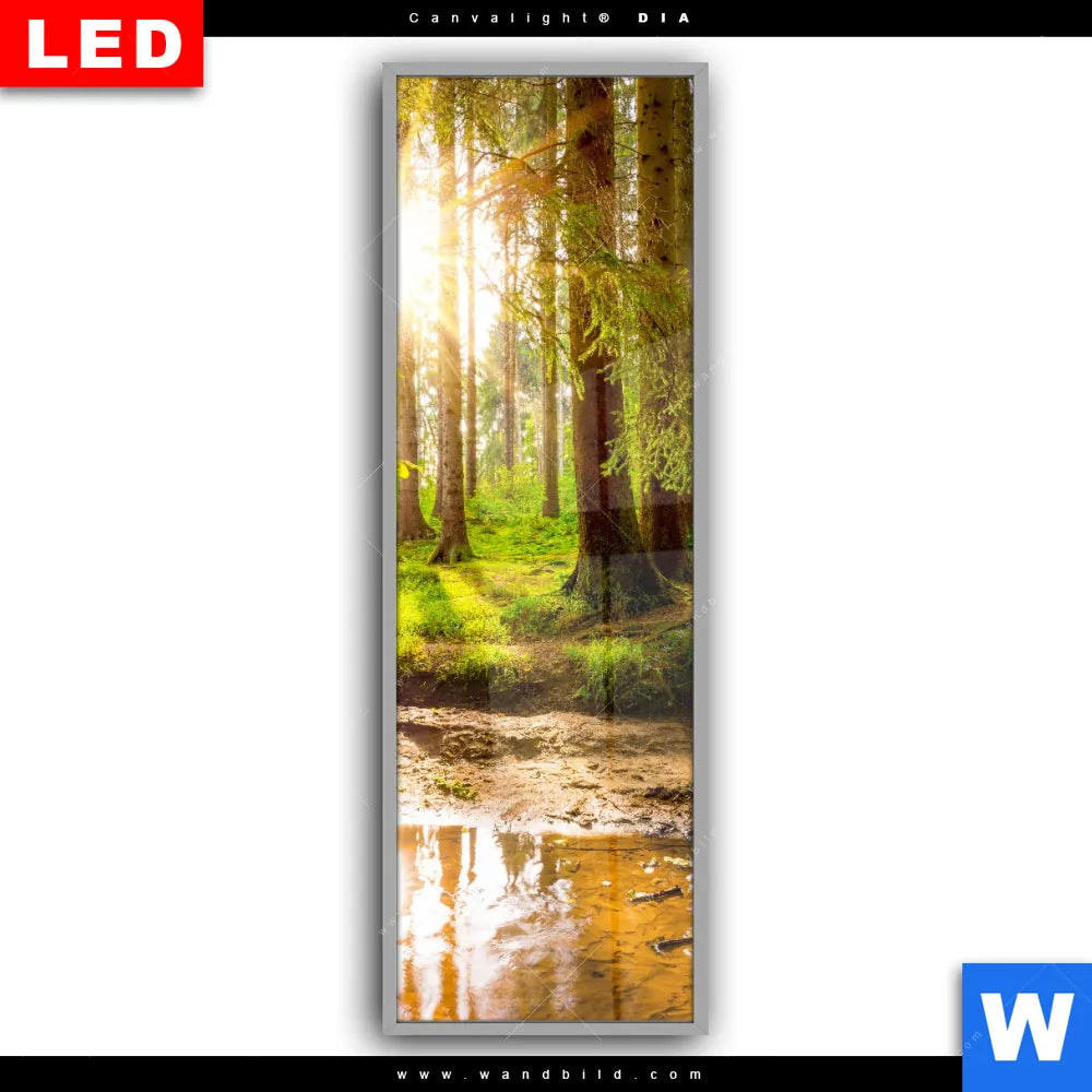 Canvalight® DIA Leuchtbild | Sonne im grünen Wald | Schmal