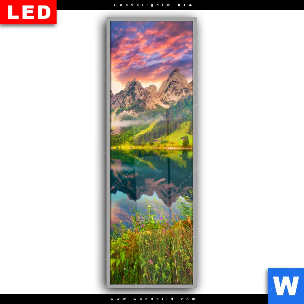 Canvalight® DIA Leuchtbild | Sonnenaufgang am Bergsee | Schmal