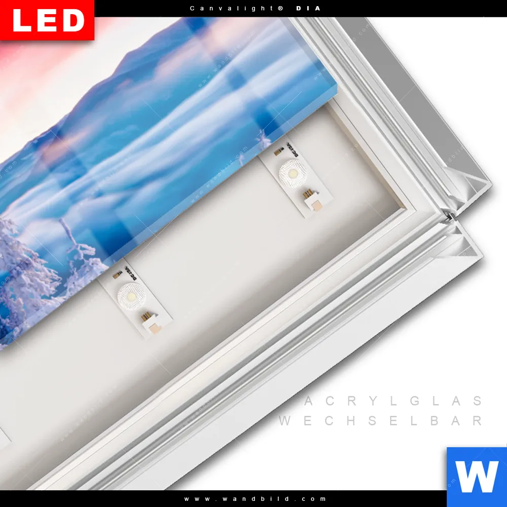 LED-Glasbild mit austauschbarem Acrylglas-Druck (Wechselbild)