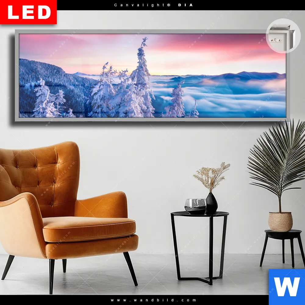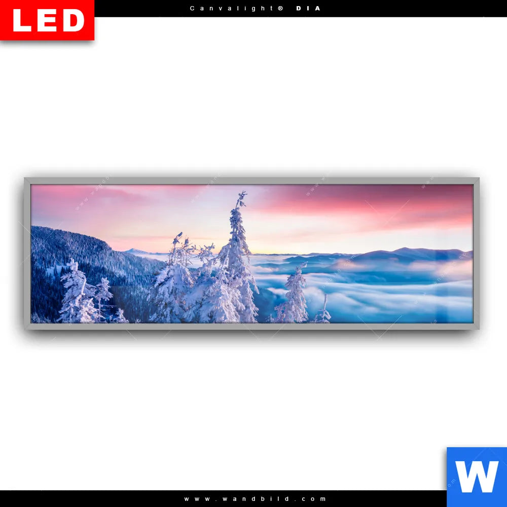 Canvalight® DIA Leuchtbild | Sonnenaufgang im Schnee | Panorama
