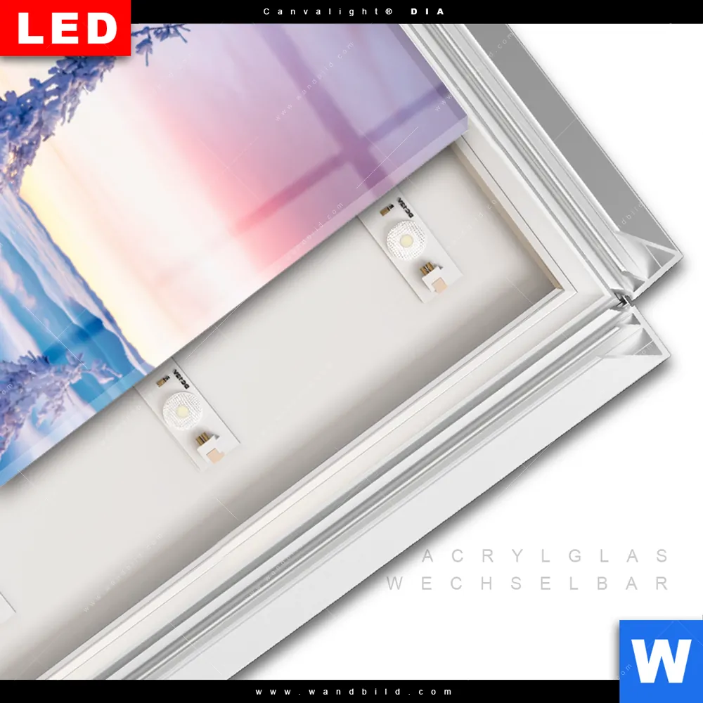 LED-Glasbild mit austauschbarem Acrylglas-Druck (Wechselbild)