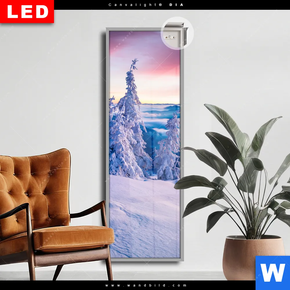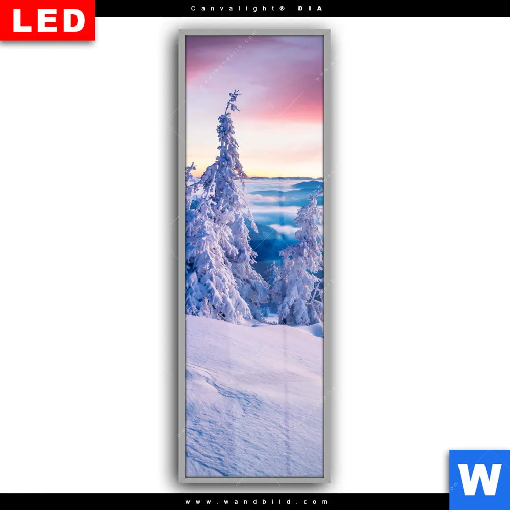 Canvalight® DIA Leuchtbild | Sonnenaufgang im Schnee | Schmal