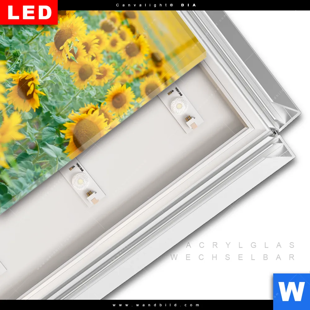 LED-Glasbild mit austauschbarem Acrylglas-Druck (Wechselbild)
