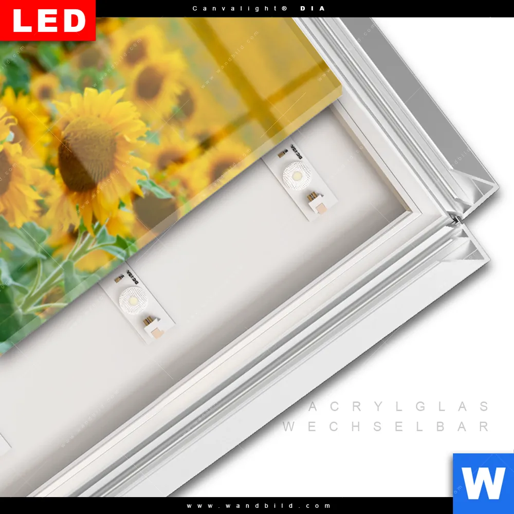 LED-Glasbild mit austauschbarem Acrylglas-Druck (Wechselbild)