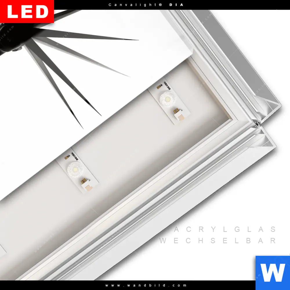 LED-Glasbild mit austauschbarem Acrylglas-Druck (Wechselbild)