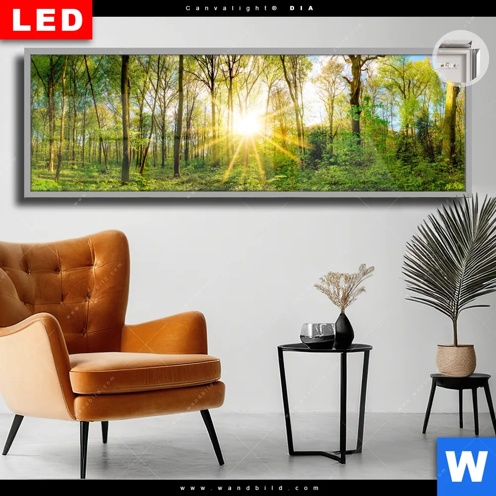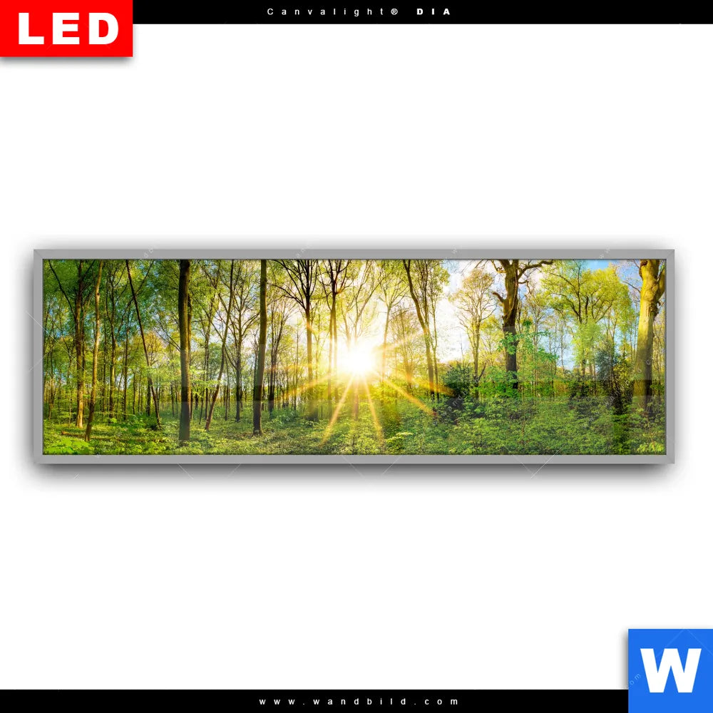 Canvalight® DIA Leuchtbild | Sonnenlicht im Wald | Panorama