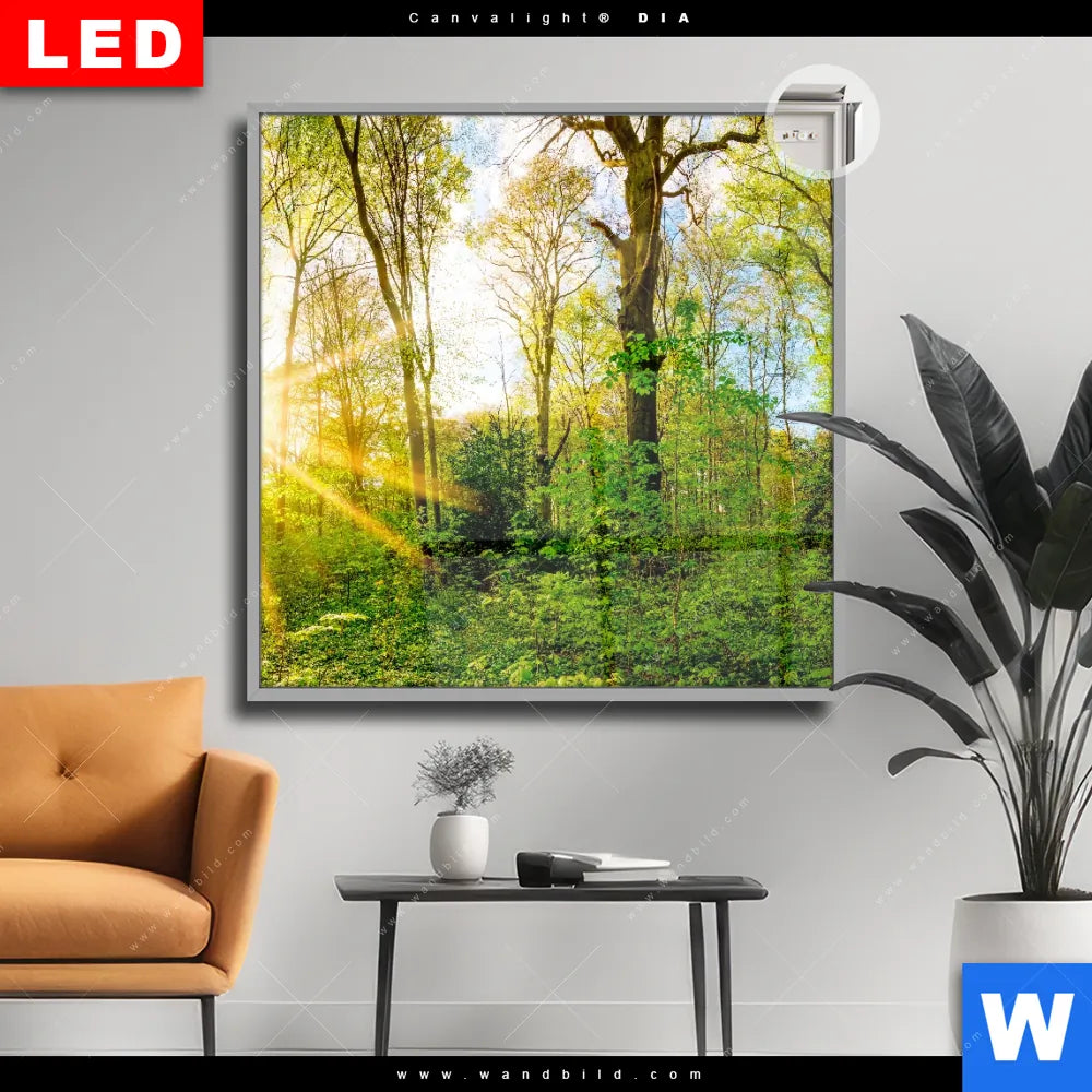 Canvalight® DIA Leuchtbild | Sonnenlicht im Wald | Quadrat