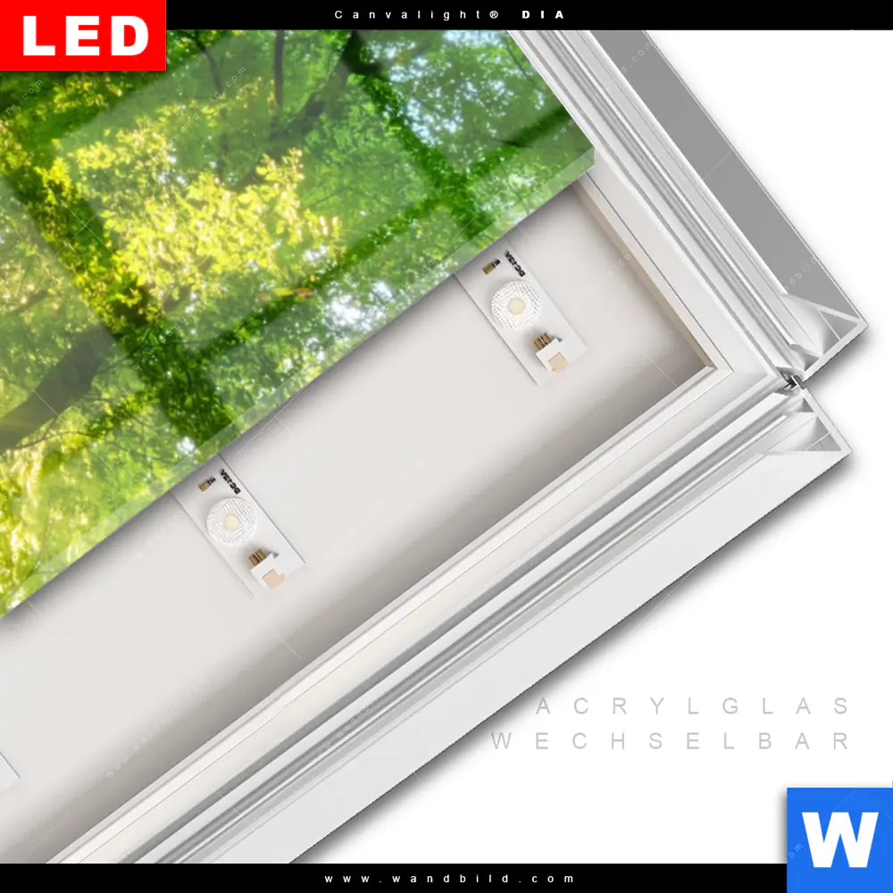 LED-Glasbild mit austauschbarem Acrylglas-Druck (Wechselbild)