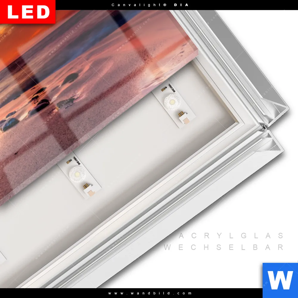 LED-Glasbild mit austauschbarem Acrylglas-Druck (Wechselbild)