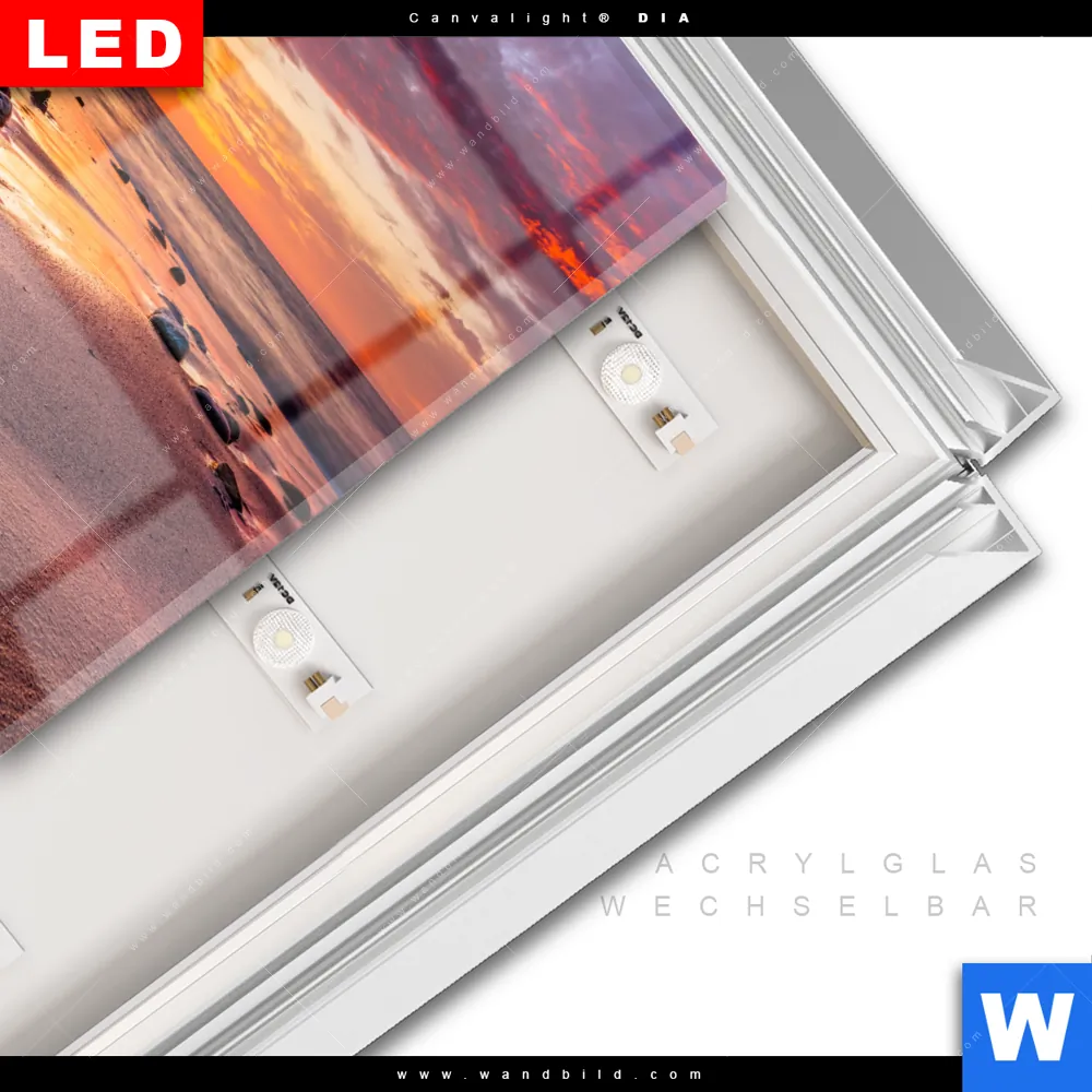 LED-Glasbild mit austauschbarem Acrylglas-Druck (Wechselbild)