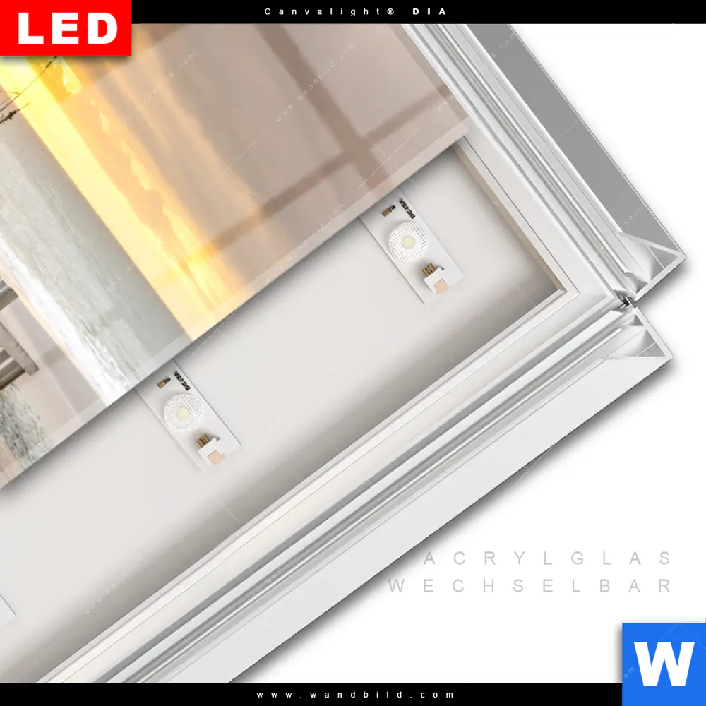 LED-Glasbild mit austauschbarem Acrylglas-Druck (Wechselbild)