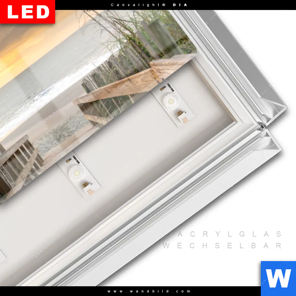 LED-Glasbild mit austauschbarem Acrylglas-Druck (Wechselbild)